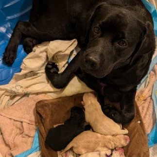 6 puppies: 3 yellows (2 boys 1 girl), 3 black (2 boys 1 girl)
